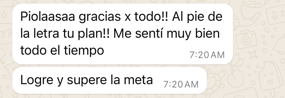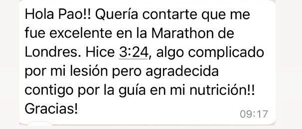 Yo quería agradecerte me fue súper en Madrid ! Clasifique a Boston .. seguí al pie de la letra el plan de nutrición ! Tks tks